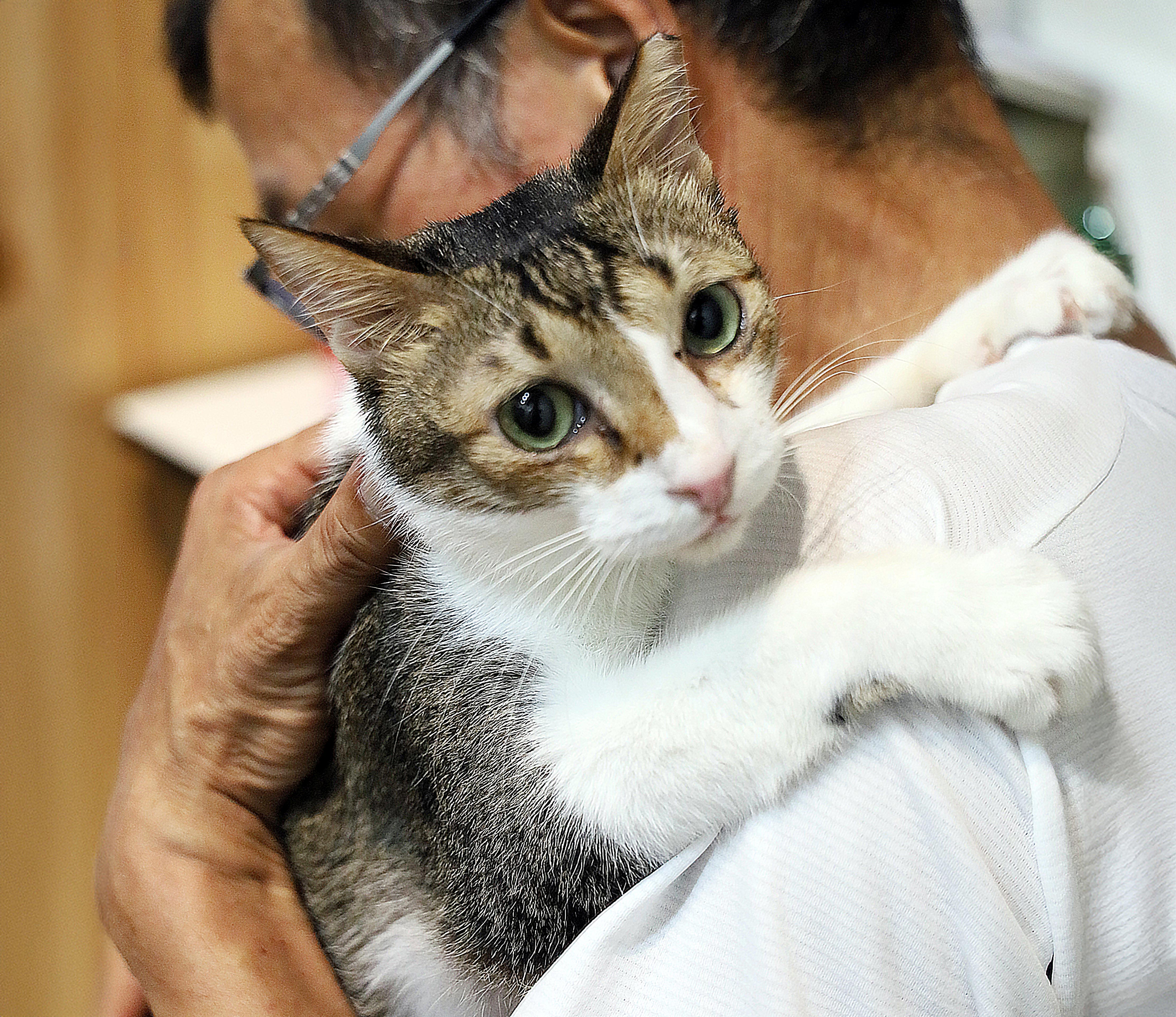 展展是一隻,很容易讓人一抱就捨不得放下的貓。他會自然地把身體靠過來,把頭貼在你的肩上,像是在告訴你:「我相信你,這裡是安全的。」